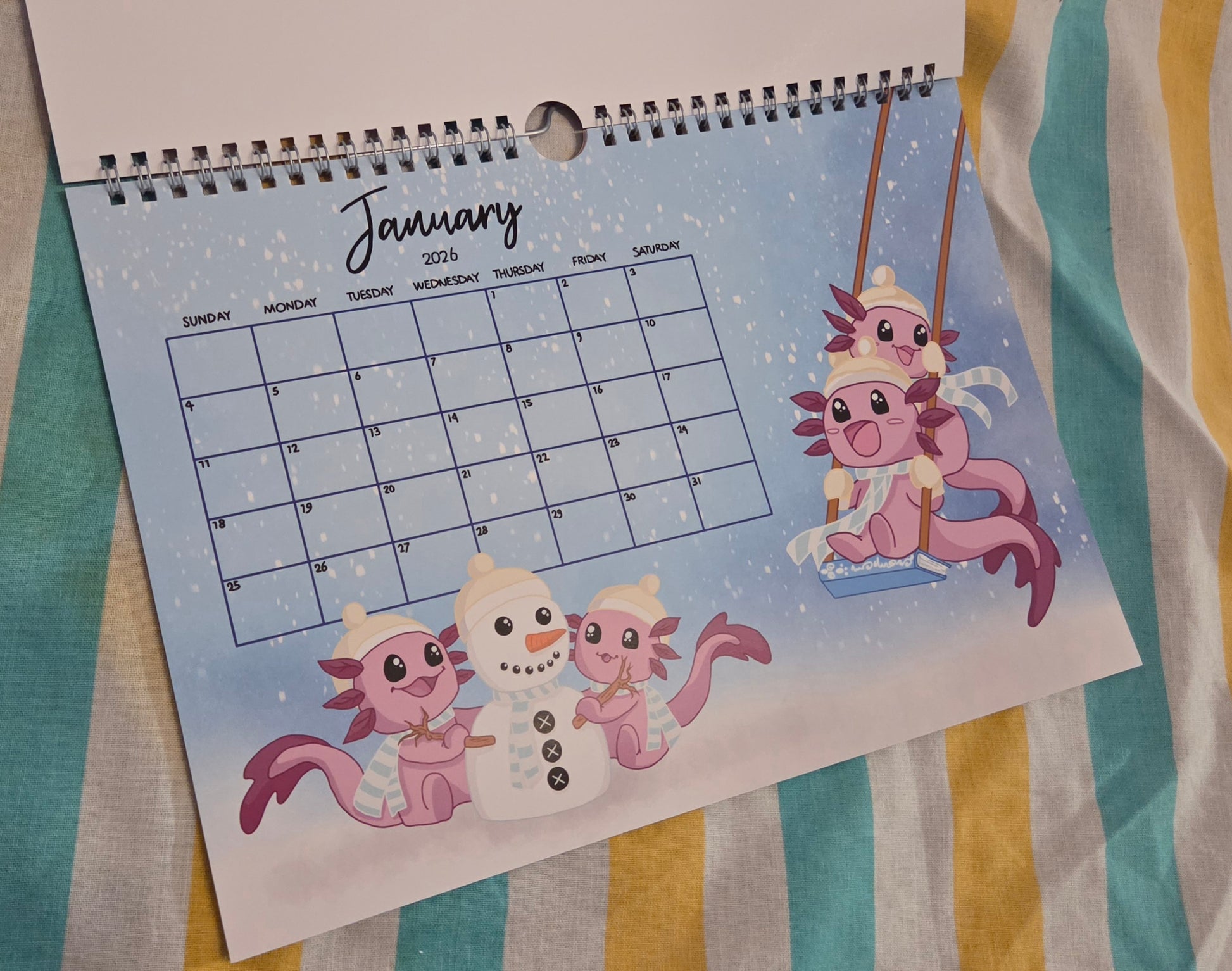 A A4 wall calendar, with al our cute animals and brand new art, there is a hook for hanging it on your wall!